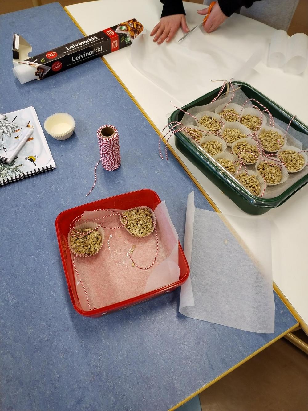 Lintujen talviruokinta -projekti talvi 2025 ja talipallojen askartelua.