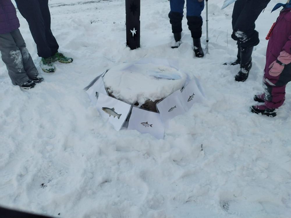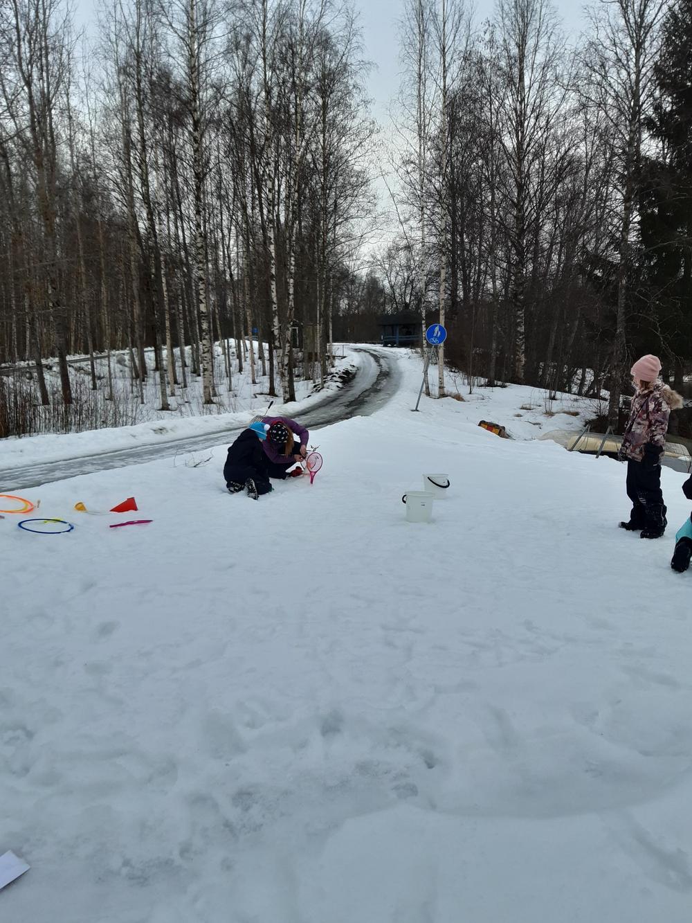 Pääsiäispaja rastirata teemoina: jokaisenoikeudet, eläinten jälkien tunnistus, tunnista luonnonmateriaali äänen ja tunnustelun perusteella, pääsiäisaskarteluja luonnon materiaaleista.