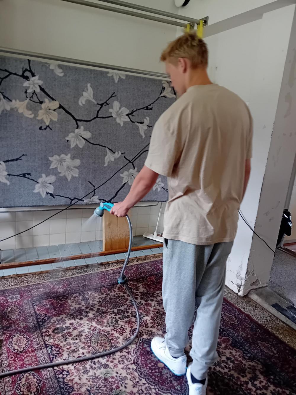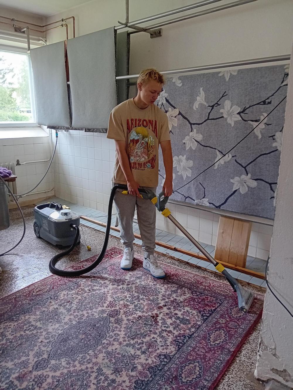 Pesulaan kesätöihin päässyt nuori kertoo, että töissä on ollut kivaa. Hänen työtehtäviinsä kuuluu mm. lakanapyykin kuivamaan ja linkoamaan laittaminen, viikkaaminen ja lajittelu, sekä koneellinen mattojen pesu. Mattojen pesu olikin nuoren lempipuuhaa! Nuoren mukaan kesätöissä on parasta se, että saa työkokemusta, oppii uutta ja tietenkin palkka on iso plussa!