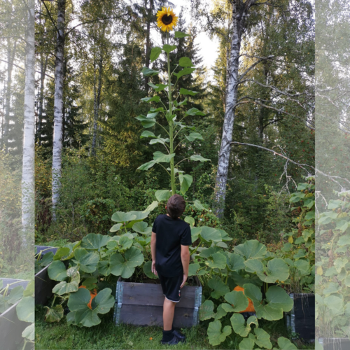 Kesän kasvatuskilpailu on päättynyt ja saimme kilpailuun mukaan monta hyvin kasvanutta auringonkukkaa ja kurpitsaa. 🌻🎃 Korkein auringonkukka oli pituudeltaan 3,55 metriä ja painavin kurpitsa painoi 17,3 kg. Voittajiin ollaan pian yhteydessä. Kiitos kaikille osallistujille! Kuvat ovat satunnaisessa järjestyksessä.
